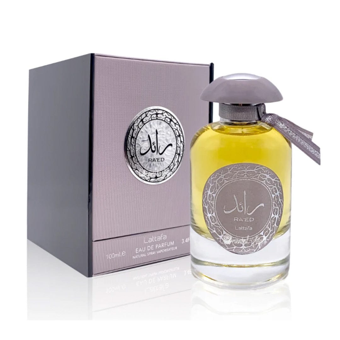 Ra'ed Silver de Lattafa Perfumes es una fragancia de la familia olfativa Oriental Especiada para Hombres y Mujeres. Ra'ed Silver se lanzó en 2021. Las Notas de Salida son cítricos, especias y mandarina; las Notas de Corazón son canela, ámbar, clavos de olor y azafrán; las Notas de Fondo son vainilla, almizcle, cuero, ámbar gris y madera de oud.
