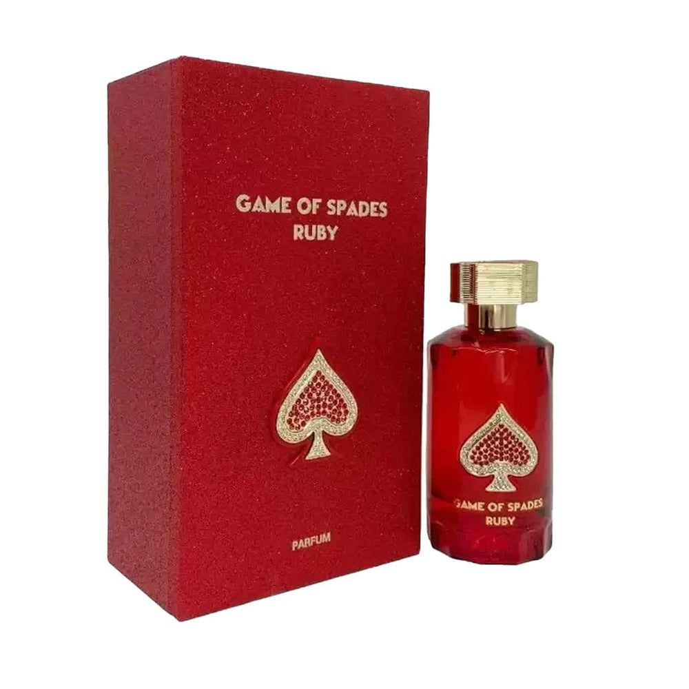 Jo Milano Paris Game of Spades Ruby Parfum 100 ml (Unisex) es una fragancia oriental floral especiada que combina notas de azafrán, bergamota, rosa, geranio, magnolia, ámbar, maderas y civet. Es ideal para otoño e invierno, especialmente durante la noche, gracias a su calidez y profundidad.