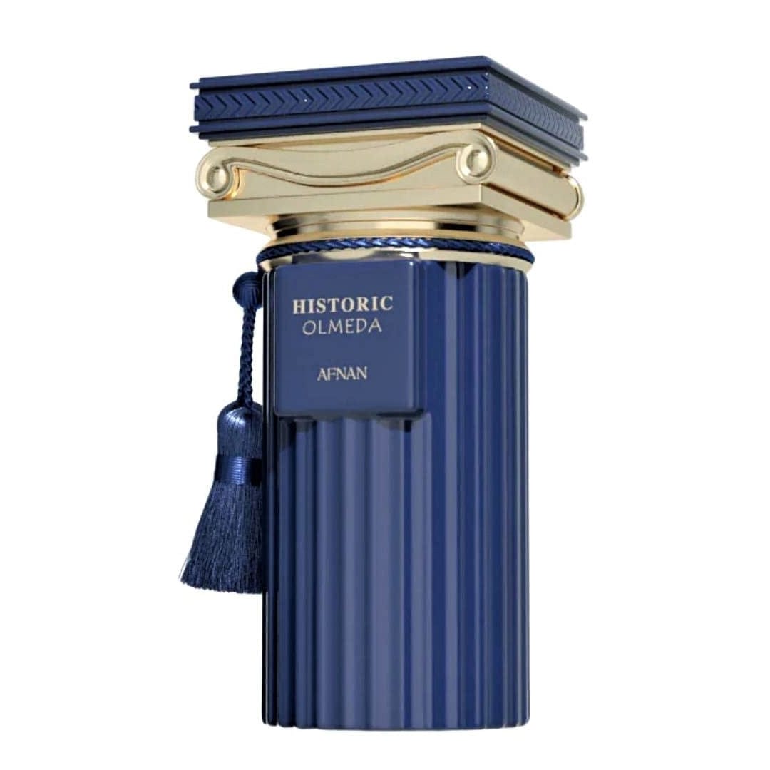 Historic Olmeda de Afnan es una fragancia de la familia olfativa Aromática Especiada para Hombres y Mujeres. Esta fragrancia es nueva. Historic Olmeda se lanzó en 2022. Las Notas de Salida son toronja (pomelo), pimienta rosa, enebro de Virginia y cardamomo; las Notas de Corazón son bergamota de Calabria, cedro, jazmín y nuez moscada; las Notas de Fondo son ámbar gris, manzana, almizcle y pachulí.