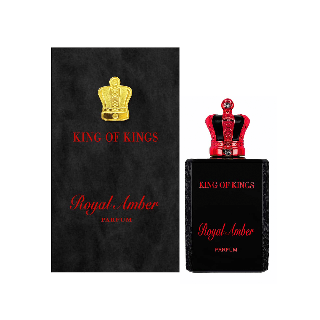 Royal Amber de King of Kings es una fragancia de la familia olfativa Oriental Floral para Hombres y Mujeres. Esta fragrancia es nueva. Royal Amber se lanzó en 2024. Las Notas de Salida son jengibre, bergamota de Calabria, limón de Amalfi (lima de Amalfi) y mango; las Notas de Corazón son melón, pera, cardamomo, clavo de olor, manzana verde y canela; las Notas de Fondo son ámbar, vainilla Bourbon y almizcle blanco.