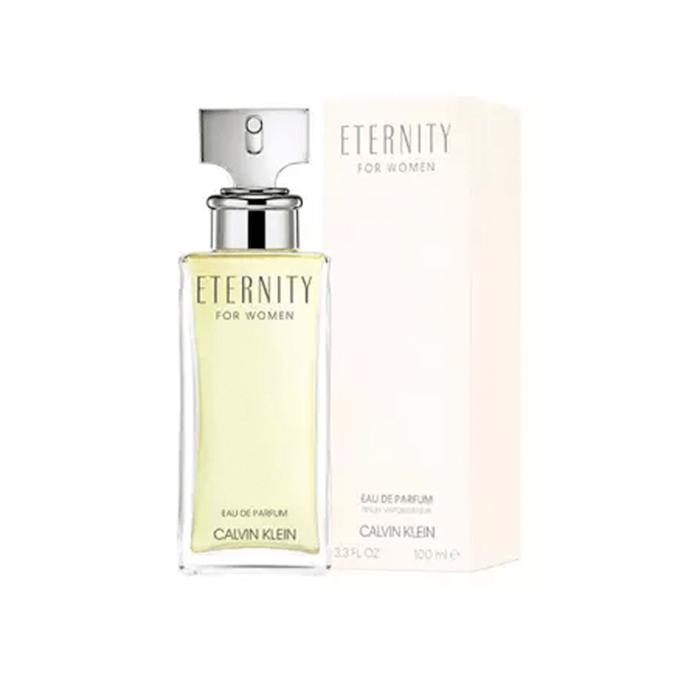 Eternity de Calvin Klein es una fragancia de la familia olfativa Floral para Mujeres. Eternity se lanzó en 1988. La Nariz detrás de esta fragrancia es Sophia Grojsman. Las Notas de Salida son cítricos, notas verdes, mandarina, fresia y salvia; las Notas de Corazón son azucena, clavel, violeta, jazmín, caléndula, lirio de los valles (muguete), rosa y narciso; las Notas de Fondo son sándalo, ámbar, pachulí, almizcle y heliotropo.