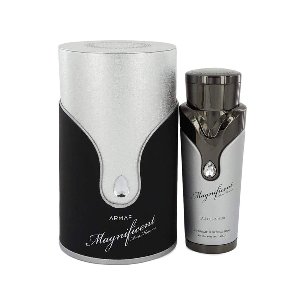 Magnificent Pour Homme de Armaf es una fragancia de la familia olfativa Ámbar Especiada para Hombres. Las Notas de Salida son toronja (pomelo), bergamota y gálbano; las Notas de Corazón son manzana, especias y jengibre; las Notas de Fondo son vainilla, gamuza, notas amaderadas, almizcle, cedro y pachulí.