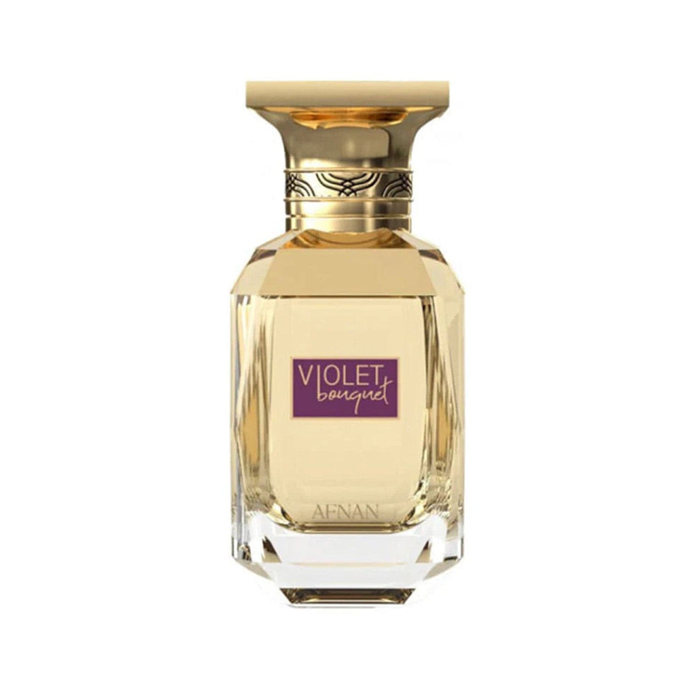 Violet Bouquet de Afnan es una fragancia de la familia olfativa Floral para Mujeres. Violet Bouquet se lanzó en 2020. Las Notas de Salida son notas dulces, azafrán, notas amaderadas y cítricos; las Notas de Corazón son ámbar, naranja, Entusiasmo de limón y notas herbales; las Notas de Fondo son ámbar gris, especias, notas amaderadas y musgo de roble.
