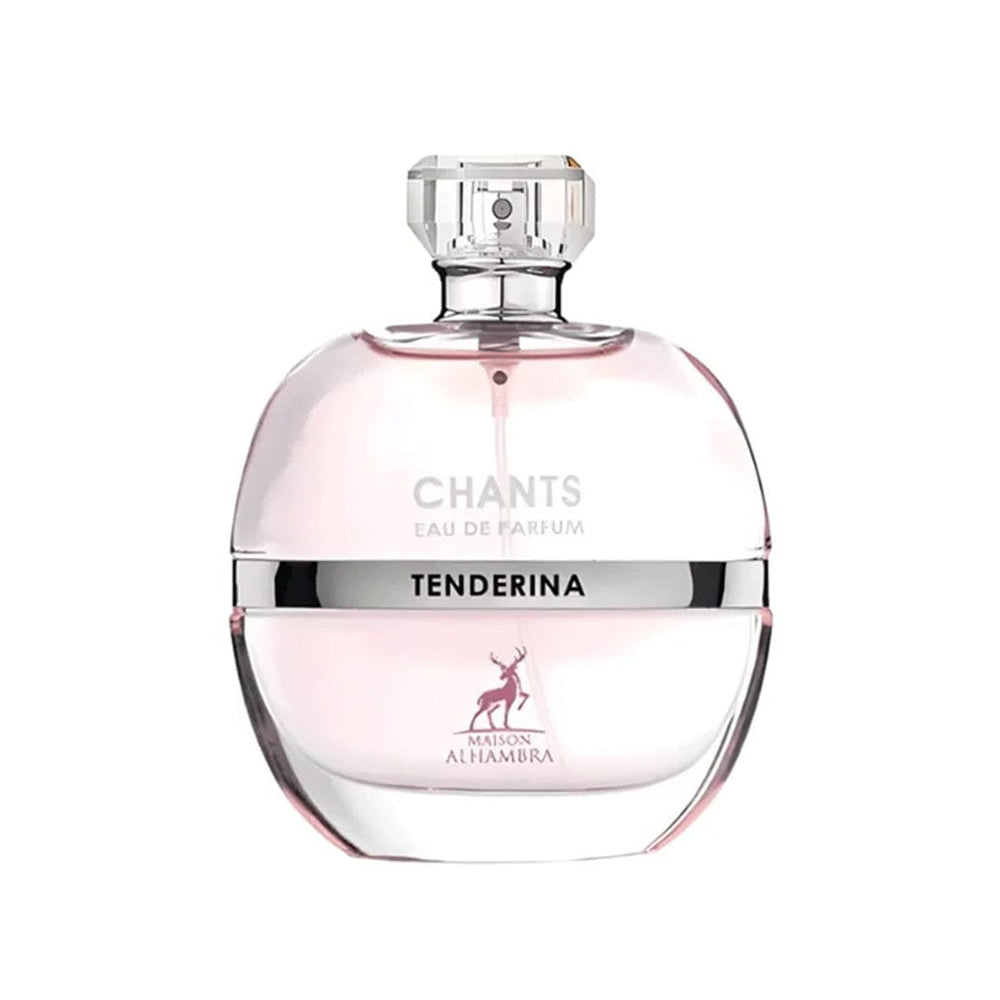 Chants Tenderina de Maison Alhambra es una fragancia de la familia olfativa Floral Frutal para Mujeres. Chants Tenderina se lanzó en 2022. Las Notas de Salida son flor del pomelo, bergamota y durazno (melocotón); las Notas de Corazón son jazmín, rosa y iris; las Notas de Fondo son almizcle blanco, vainilla, vetiver y pachulí.