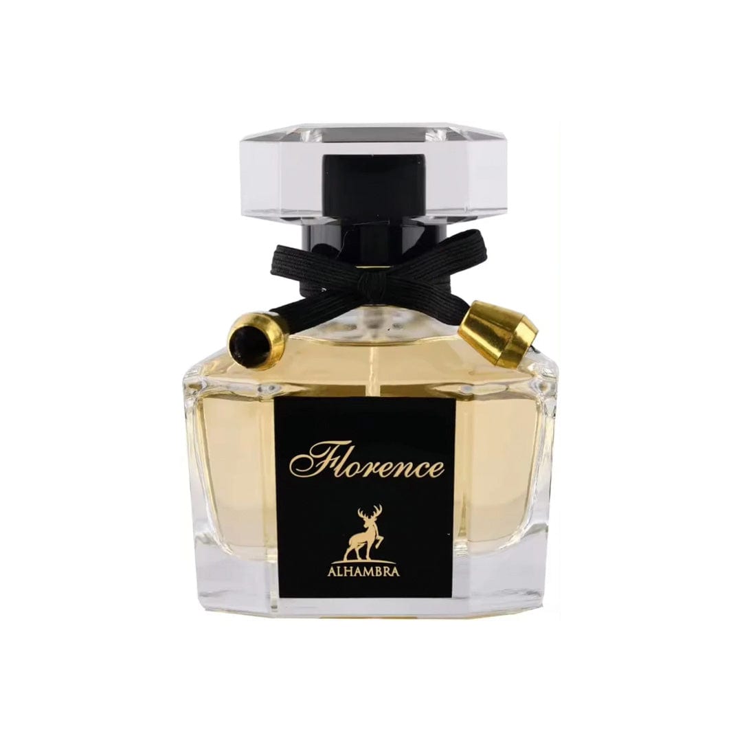 Florence de Maison Alhambra es una fragancia de la familia olfativa Floral para Mujeres. Florence se lanzó en 2022. Las Notas de Salida son Frutas rojas, bergamota y durazno (melocotón); las Notas de Corazón son jazmín, azucena y rosa; las Notas de Fondo son pachulí, vainilla y almizcle.