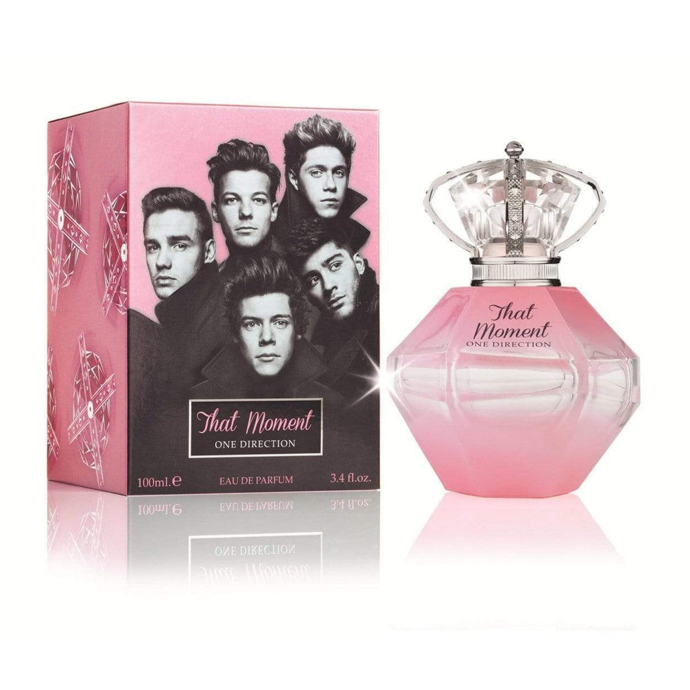 That Moment de One Direction es una fragancia de la familia olfativa Floral Frutal para Mujeres. That Moment se lanzó en 2014. Las Notas de Salida son manzana verde y toronja (pomelo) rosada; las Notas de Corazón son jazmín y violeta; las Notas de Fondo son almizcle y notas amaderadas.